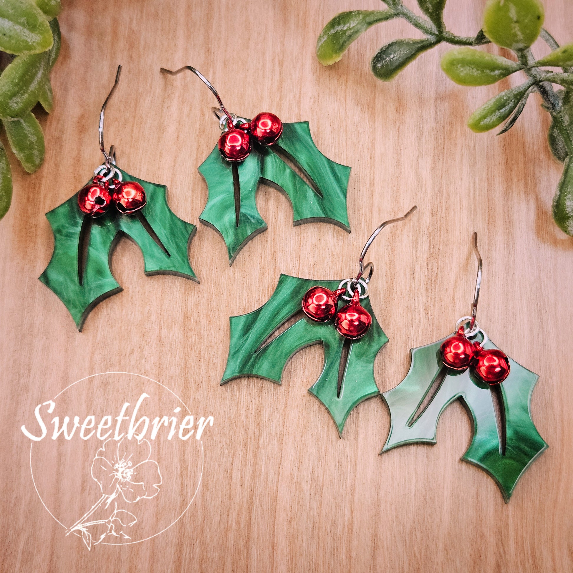 Adorn your holiday spirit with our enchanting Holly Leaves earrings featuring vibrant red jingle berries that capture the essence of festive cheer. Crafted with durable stainless steel hardware and specialty marbled acrylic, these earrings combine elegance and resilience, making them the perfect accessory for any holiday gathering. Celebrate the season in style and let your ears sparkle with the joy of Christmas!