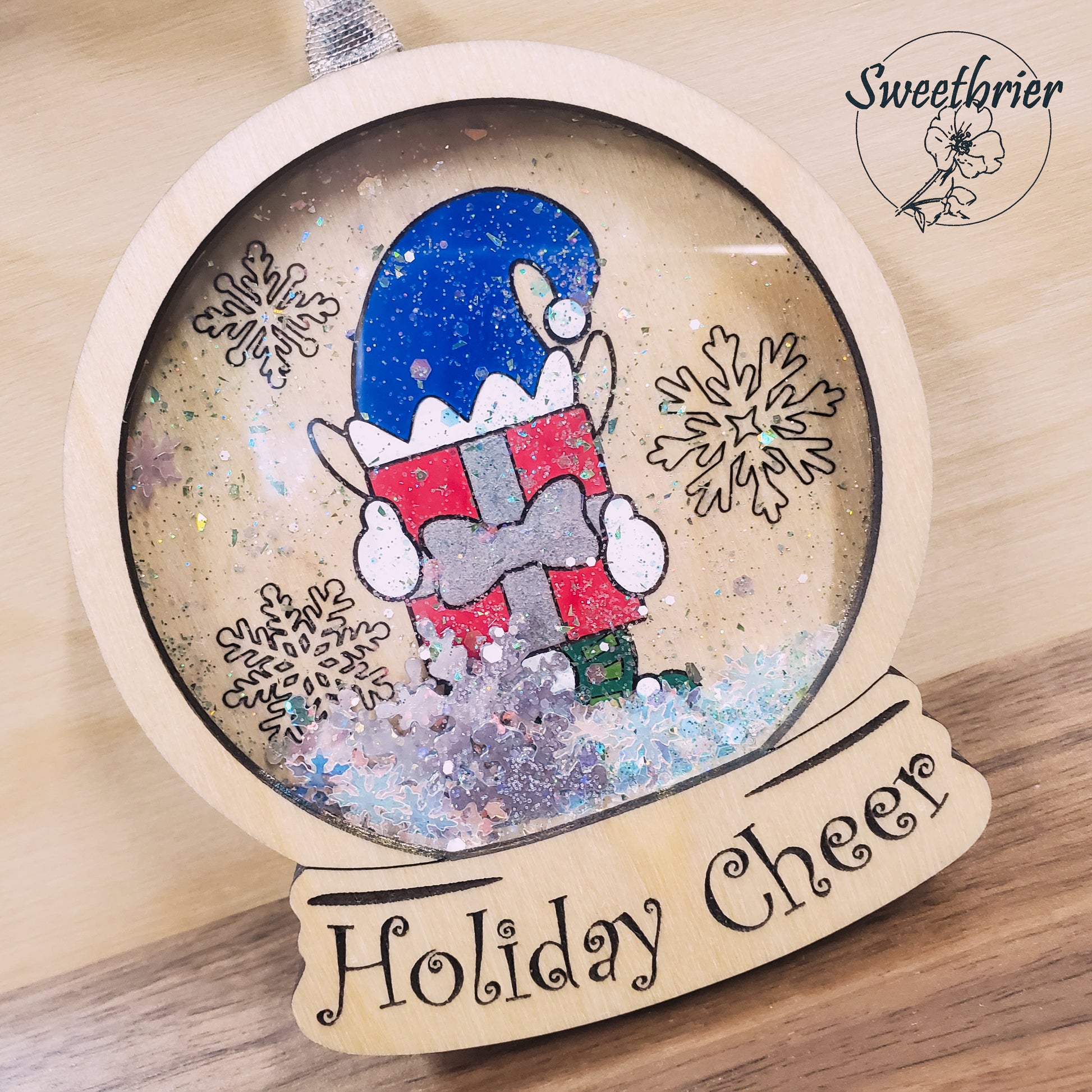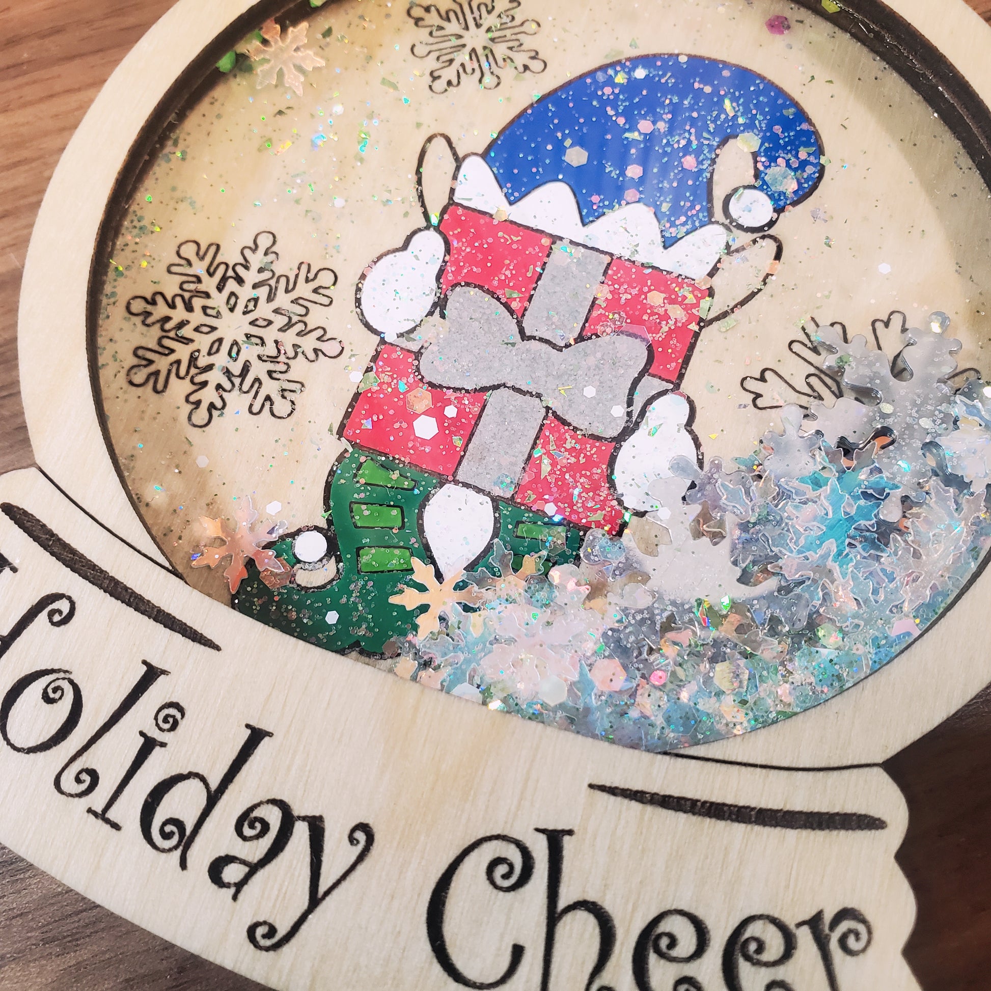 Bring the spirit of the season into your home with our delightful 4.5" x 4" Baltic Birch ornament! This charming piece features the words "Holiday Cheer" and is adorned with a handpainted gnome holding a present, making it a perfect addition to your festive decor. With its glitter filling and shaker design, this tactile ornament adds a sprinkle of magic to your holiday celebrations!